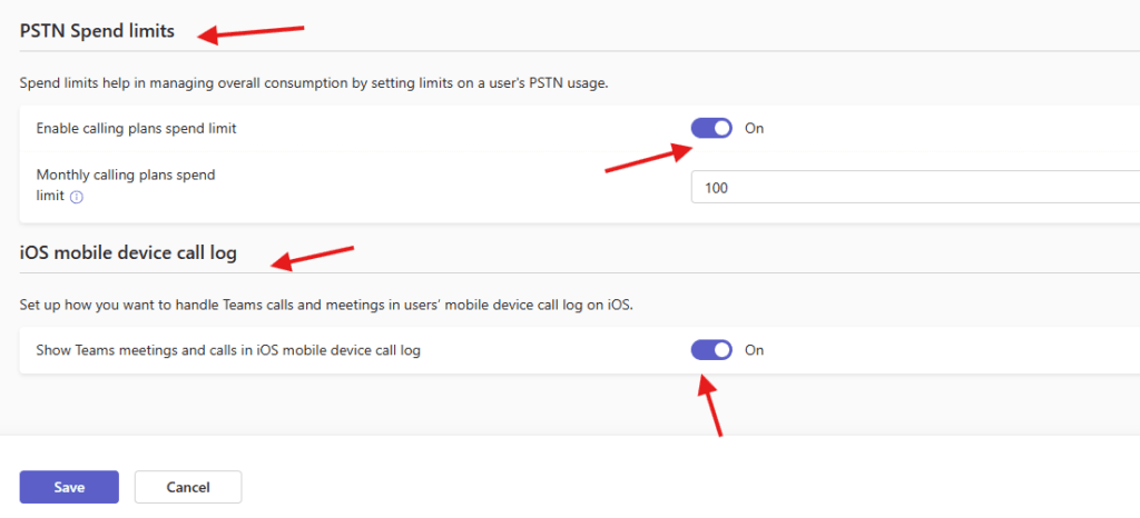 PSTN Spend limit: Spend limits help in managing overall consumption by setting limits on a user’s PSTN usage.