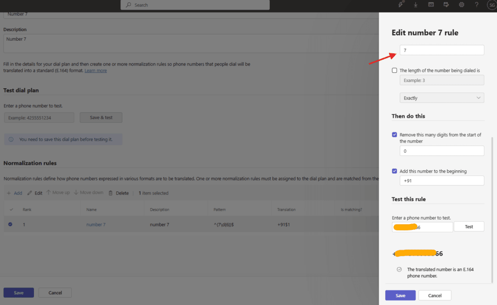 I have create a rule if someone dials a number starting with 7 digit it will be converted into +91XXXX number