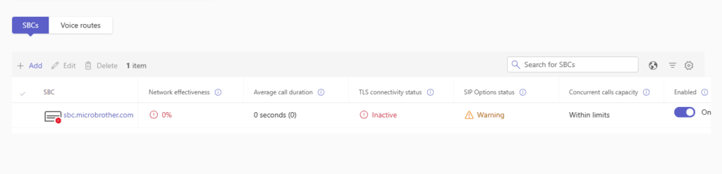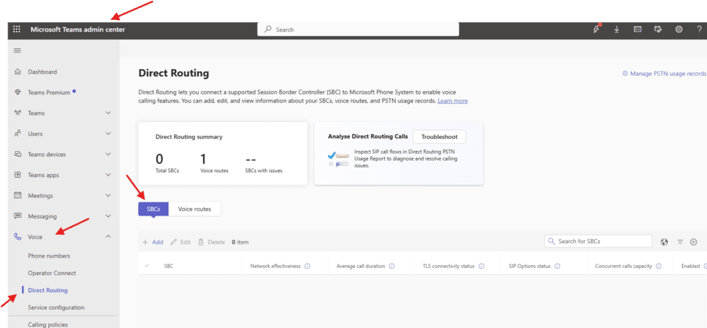 Navigate to Voice –> Direct routing –> SBC