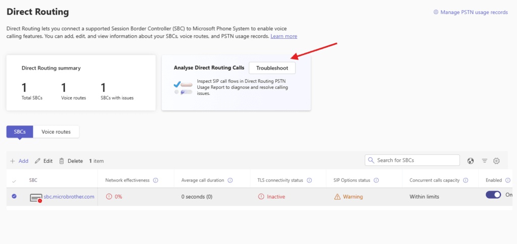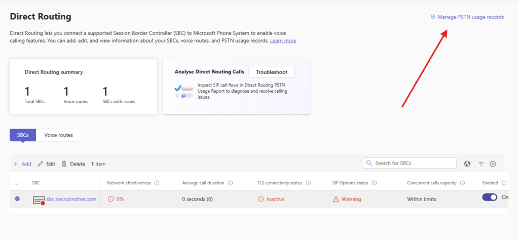 -PhoneNumberType DirectRoutingYou can click on Analyse Direct Routing Calls to troubleshoot the issue related with SBC