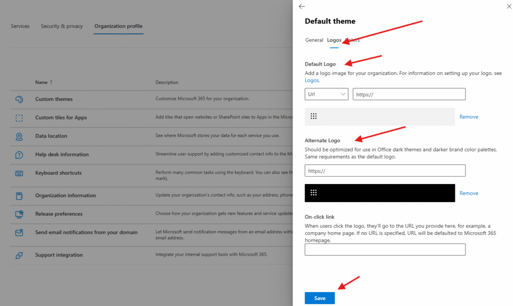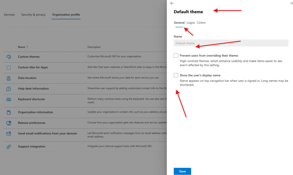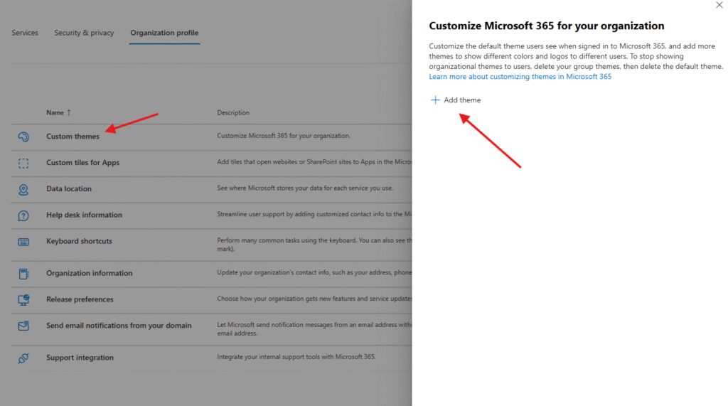 This article talks about on how to add your organization’s custom theme and logo in O365 admin center