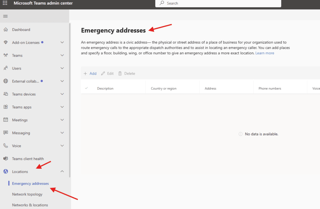 This article talks about on how to add Emergency addresses in Microsoft Teams
