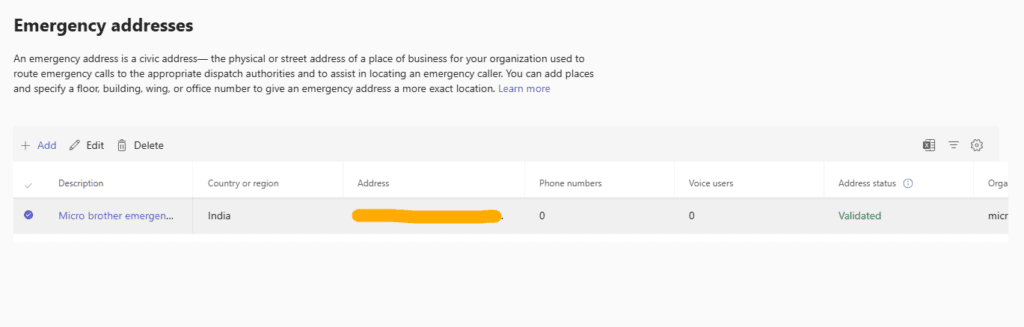 Post reading above article user will be able to set Emergency addresses in MS Teams