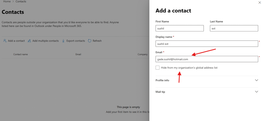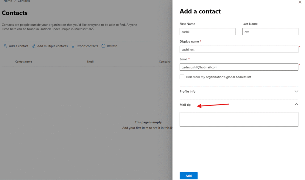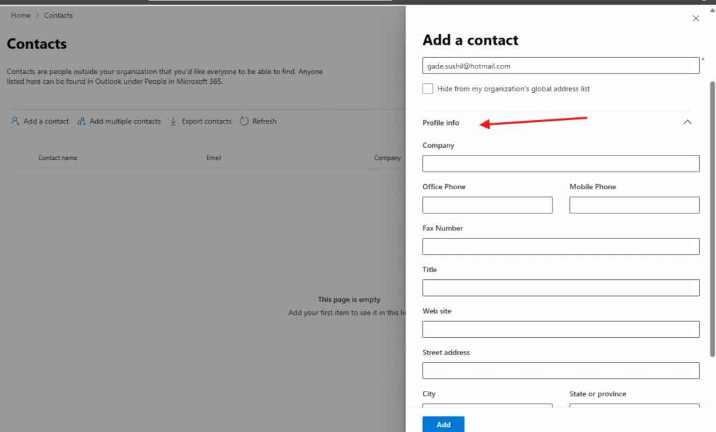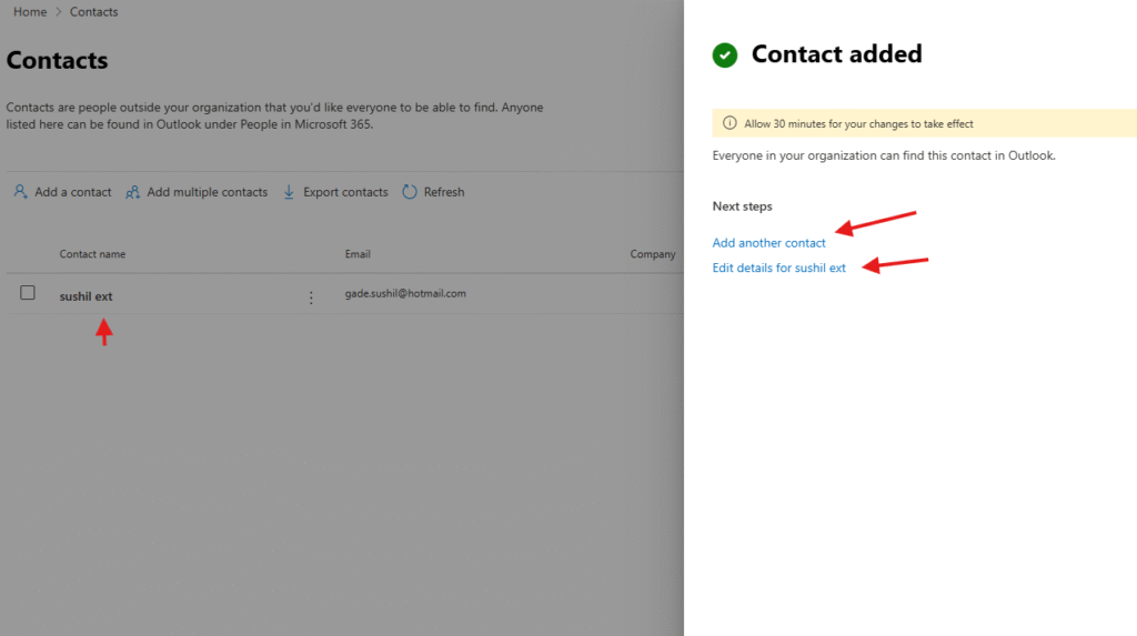 Contacts are people outside your organization that you’d like everyone to be able to find. Anyone listed in contacts can be found in Outlook under People in Microsoft 365.
