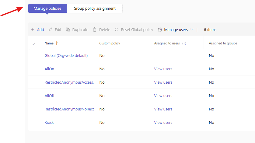 Under manage polices we have already predefined policies–> navigate thro it and assign it to the users as per business requirement, lets create new one