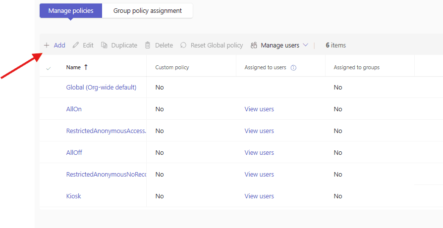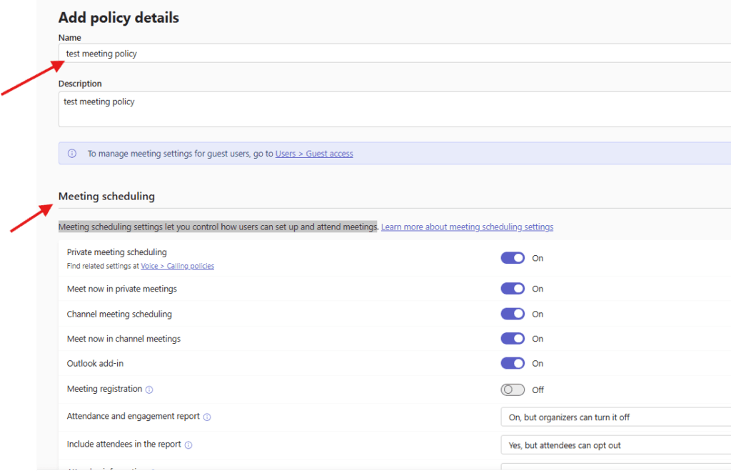 Lets create Meeting policies step by step