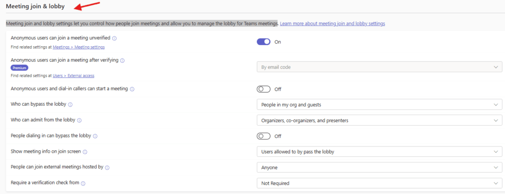 then set Meeting join and lobby settings, it let you control how people join meetings and allow you to manage the lobby for Teams meetings