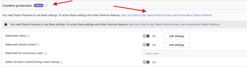 For content protection You need Teams Premium to use these settings.