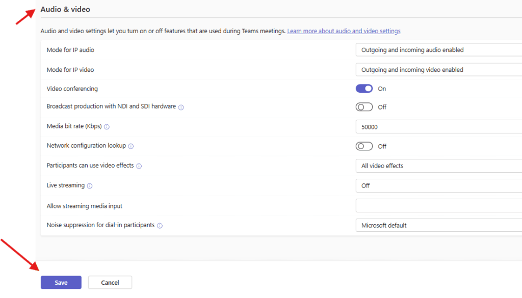 next set up Recording and transcription settings which let you control how these features are used in a Teams meeting