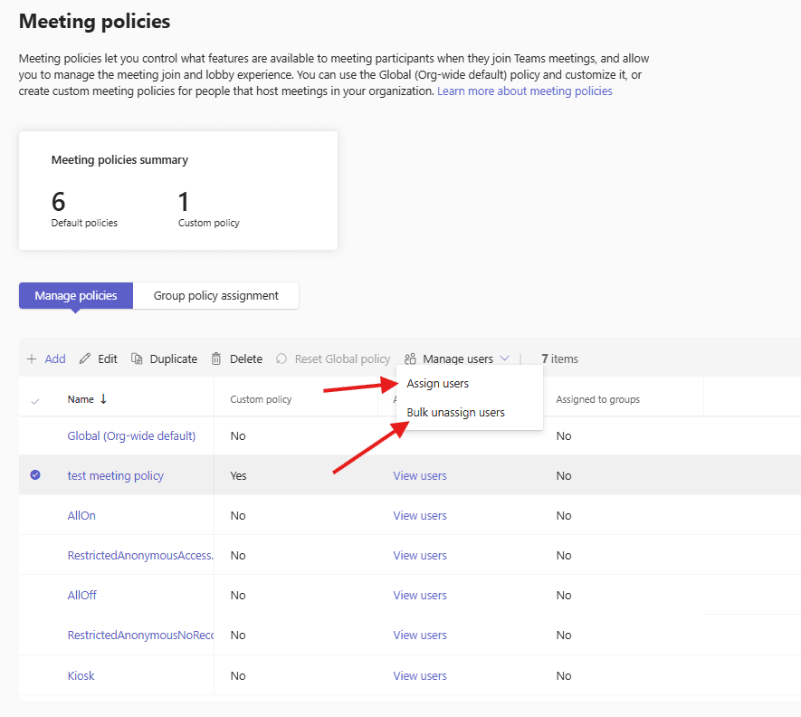 How to create Meeting policies in Teams admin center