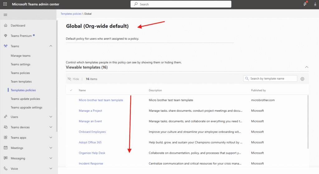 Navigate to Teams –> templates policies–> you can have to edit created Global policy