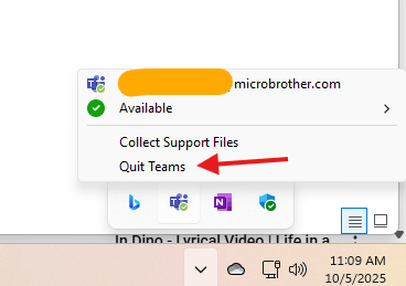 Now Quit Teams from system tray