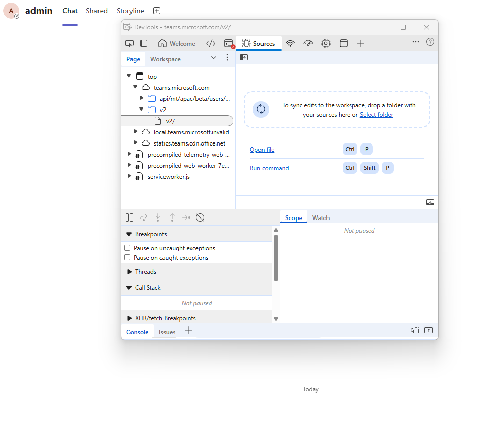 Dev tools in Teams app