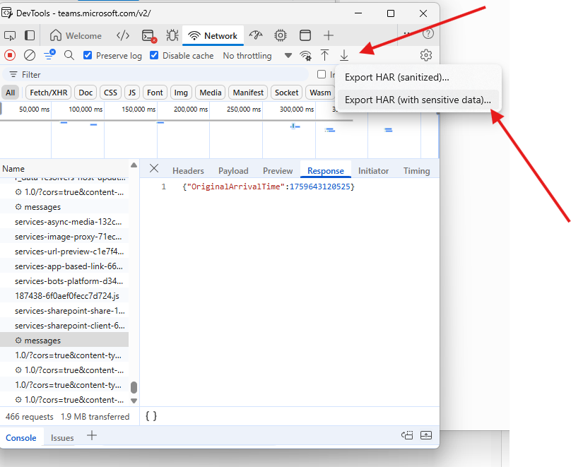 Now save the logs –> click on export HAR –> and export them with sensitive data ( see below)