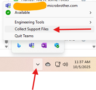 along with it collect Teams support logs –> simply open system tray –> look for teams icon–> right click on it and collect support logs