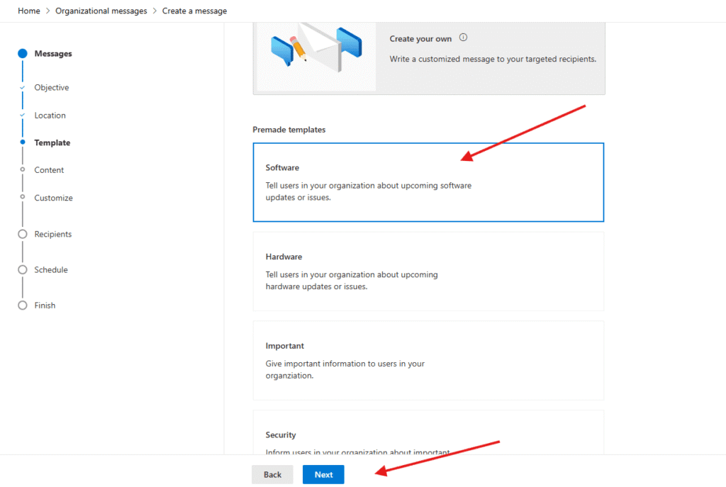 Choose how to create your message : I have selected software –> hit next