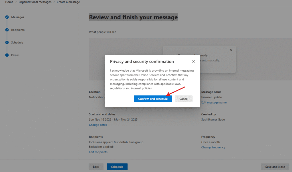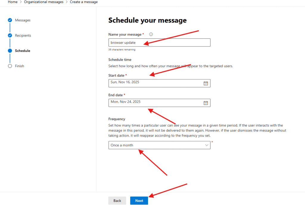 Schedule your message –> select date and frequency