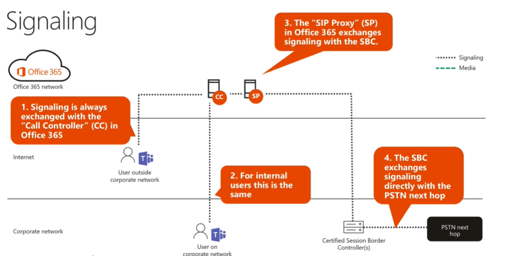 Post establishing signal user ( both corp network and internet) will send Media to Media processor aka MP which is in the M365 network, MP‘s are placed in the data center to convert codecs , traffic between MP will flow again via M365 network and send it to SBC and SBC will send it to next HOP carrier.